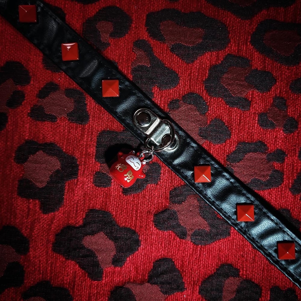 Vegan leather collars with bells on! Handmade with hand etched stainless steel DeDPuSs tag — you can be a cat too!